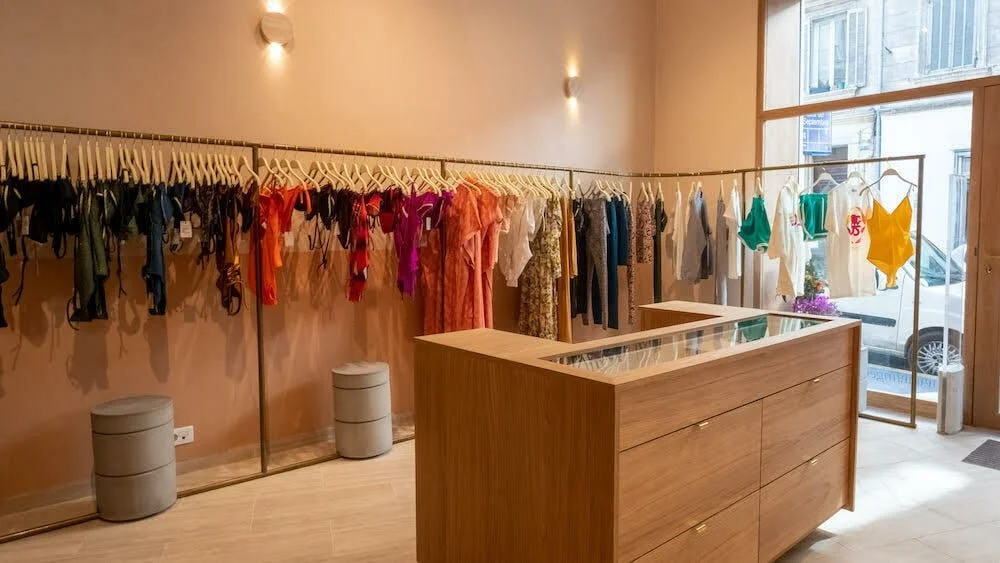 « Dans ce nouvel espace de vente et de conseil, on plonge dans une ambiance à l’image de la marque : délicate, féminine, sans artifices et au style rétro chic ! Le décor rappelle les valeurs de la marque et propose une ambiance raffinée, affirmée, chic et intemporelle. »